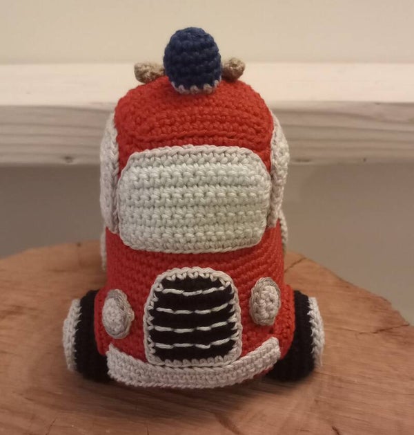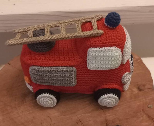 Deze brandweerwagen mag natuurlijk niet aan je verzameling ontbreken. Maar wat zal hij ook leuk staan in een stoere kinderkamer, ter decoratie met zijn andere gehaakte vrienden of om mee te spelen.